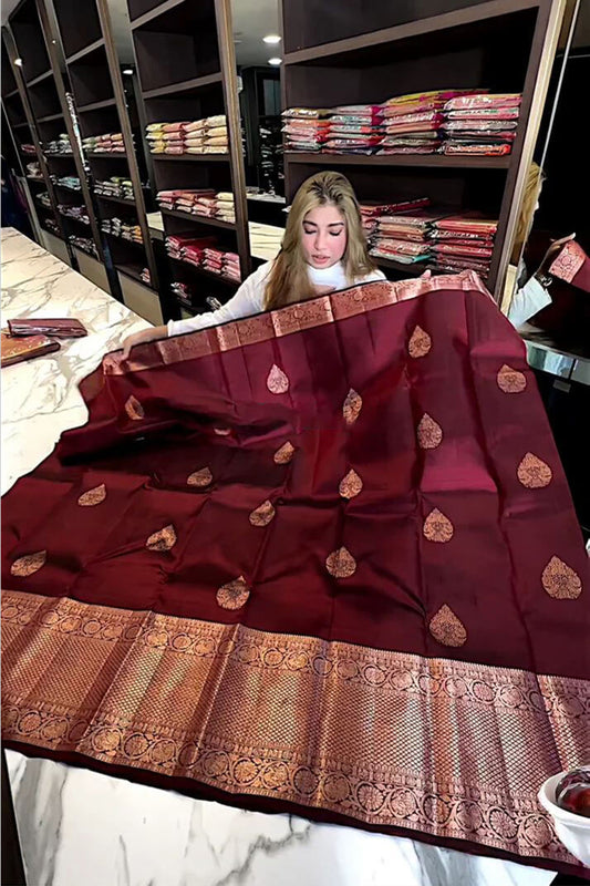 Adorable Wine Soft Silk Saree With Evocative Blouse Piece