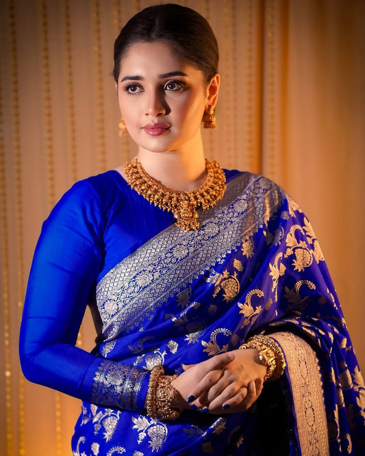 Pretty Royal Blue Soft Banarasi Silk Saree With Glorious Blouse PieceRegular price Rs. 999.00Sale price Rs. 999.00 Regular priceUnit price perRs. 2,499.0060% offSale -