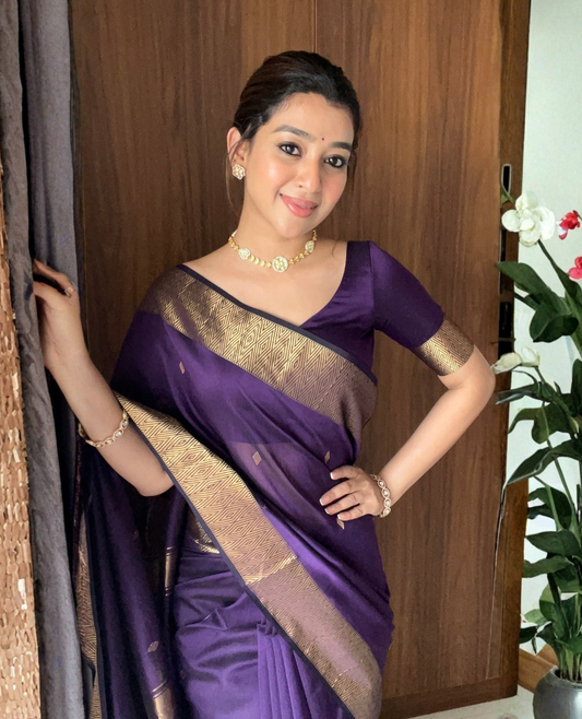 Bollywood Style Purple Silk Saree With Majestic Blouse Piece