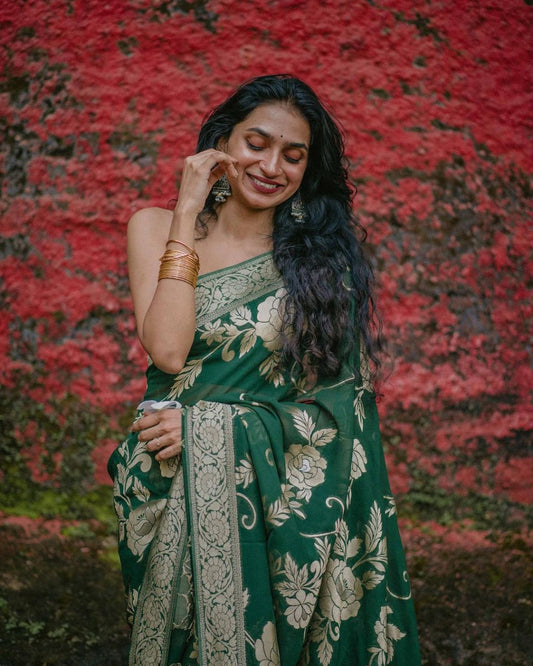 Elegant Banarasi Soft Silk Saree Collection with Gold & Silver Zari Weaving – Royal Green, Teal Blue & Maroon Shades