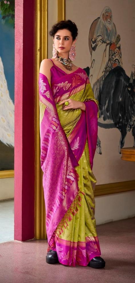 Traditional Banarasi Soft Silk Sarees with Contrast Borders