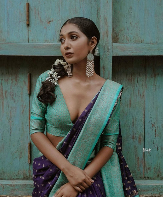 Majestic Violet & Aqua Green Soft Silk Saree with Rich Jacquard Weaving Pallu