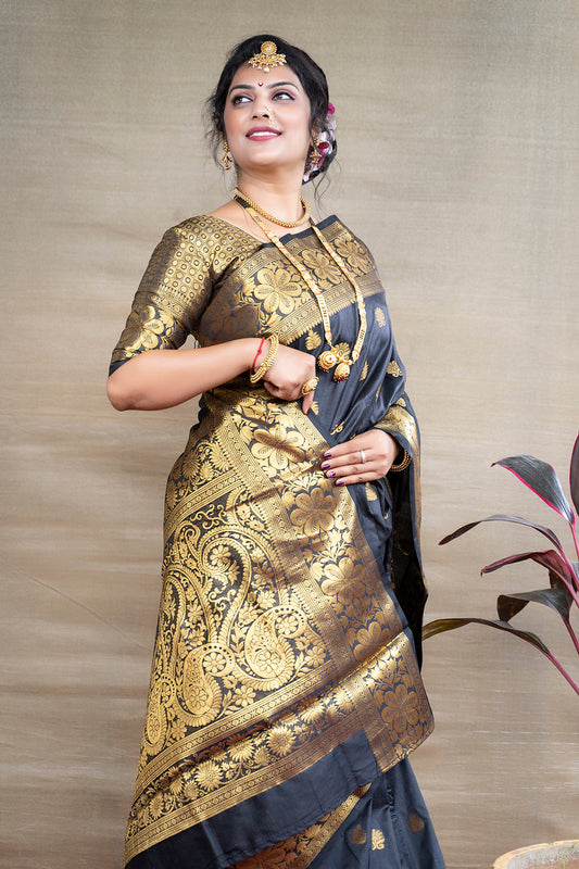 Elegant Black & Gold Jacquard Banarasi Saree with Rich Zari Work