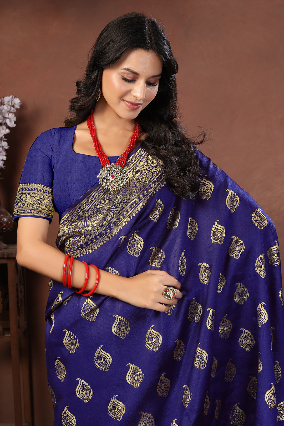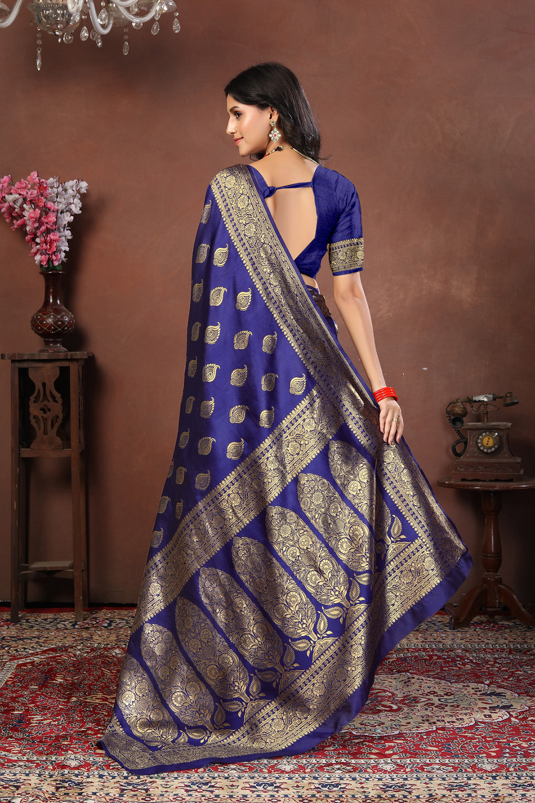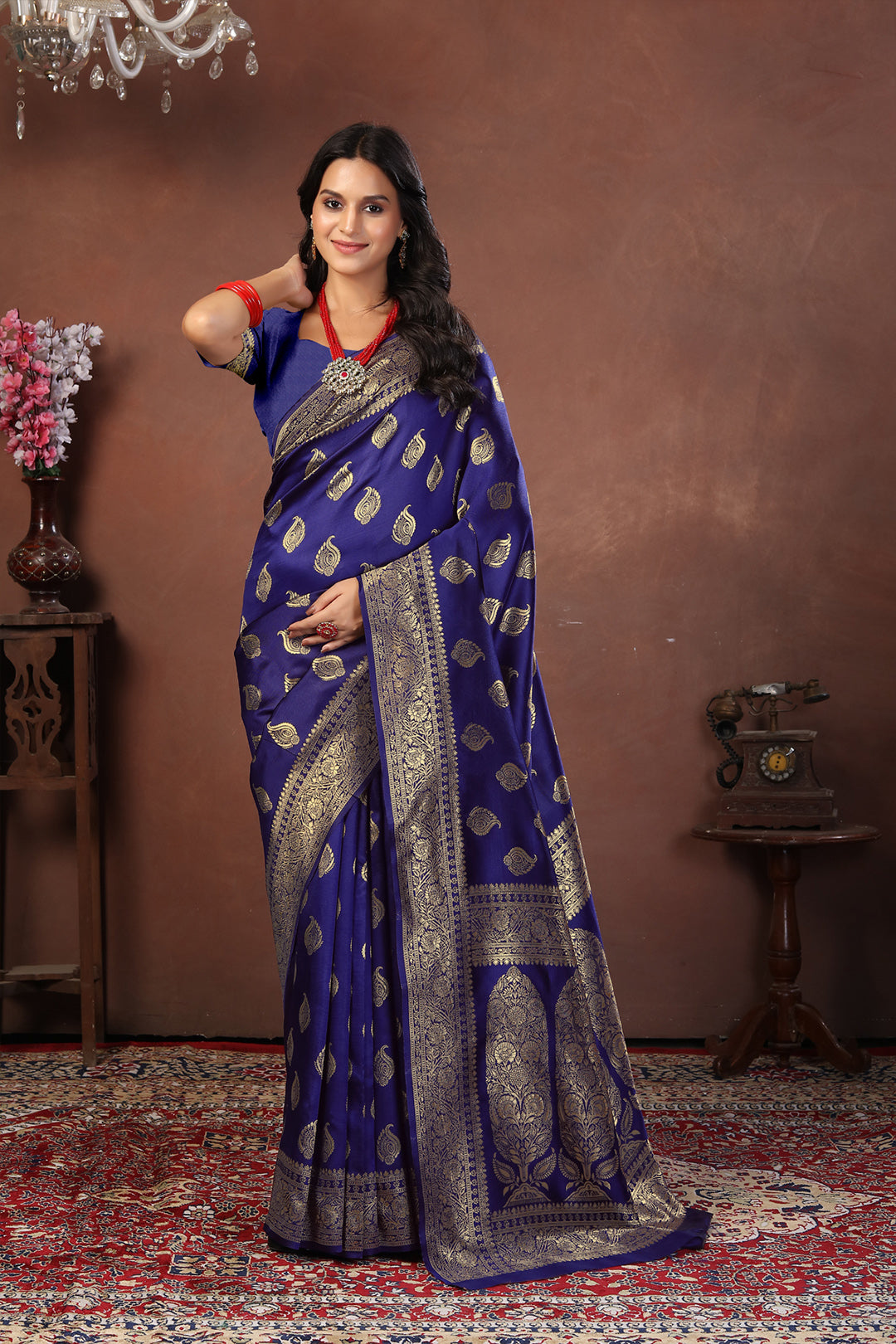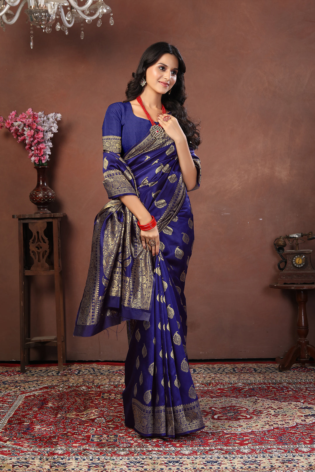 Royal Blue Banarasi Silk Saree with Golden Zari Work