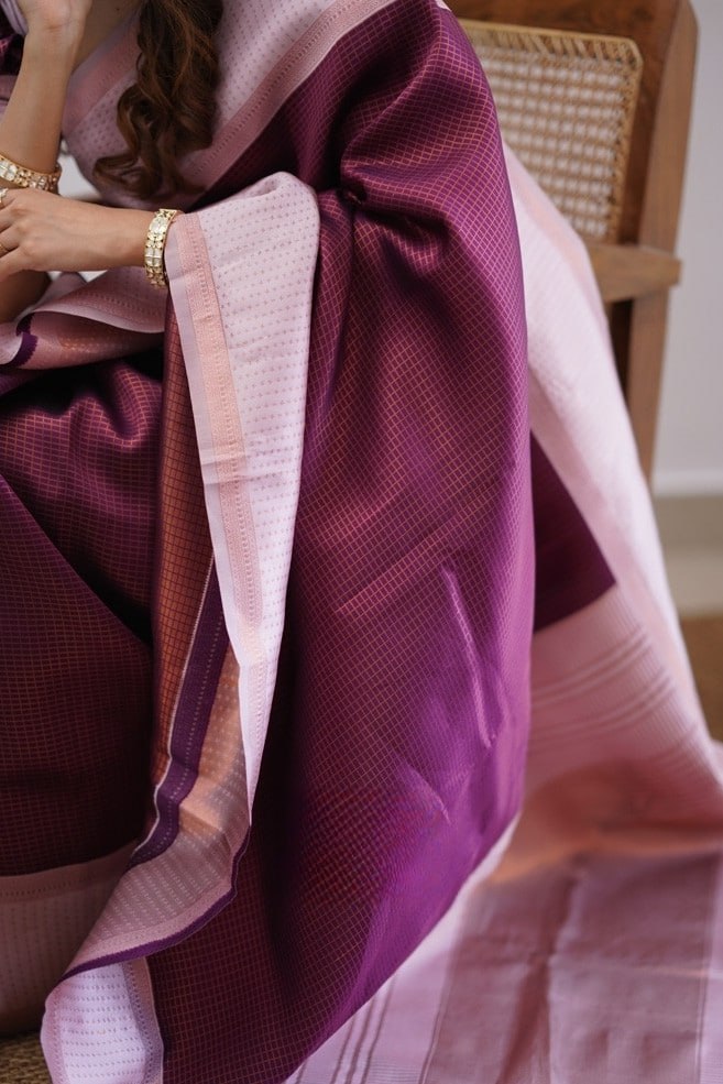 Design: Woven Self-Texture with Contrast Zari Border and Pallu