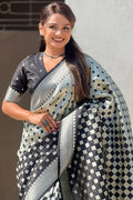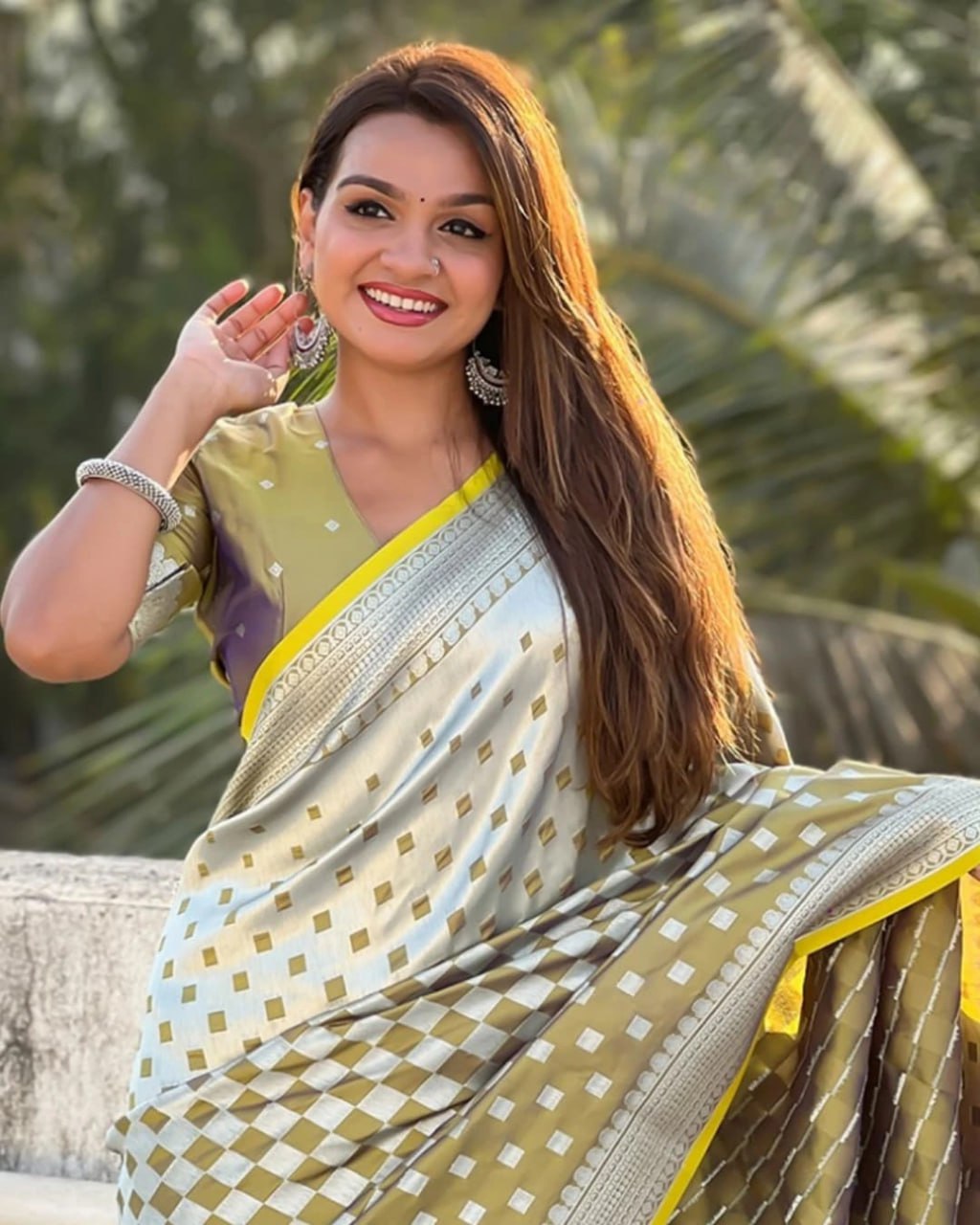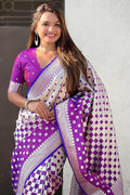 Banarasi Soft Silk Saree with Gold Zari Weaving & Checkered Design