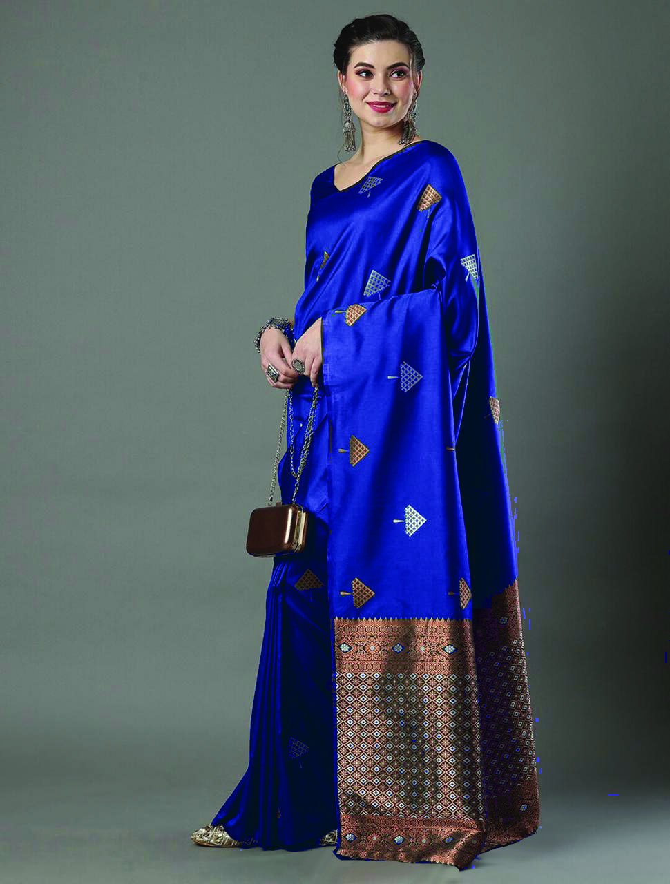 Banarasi Soft Silk Saree with Triangular Zari Motifs & Copper Border