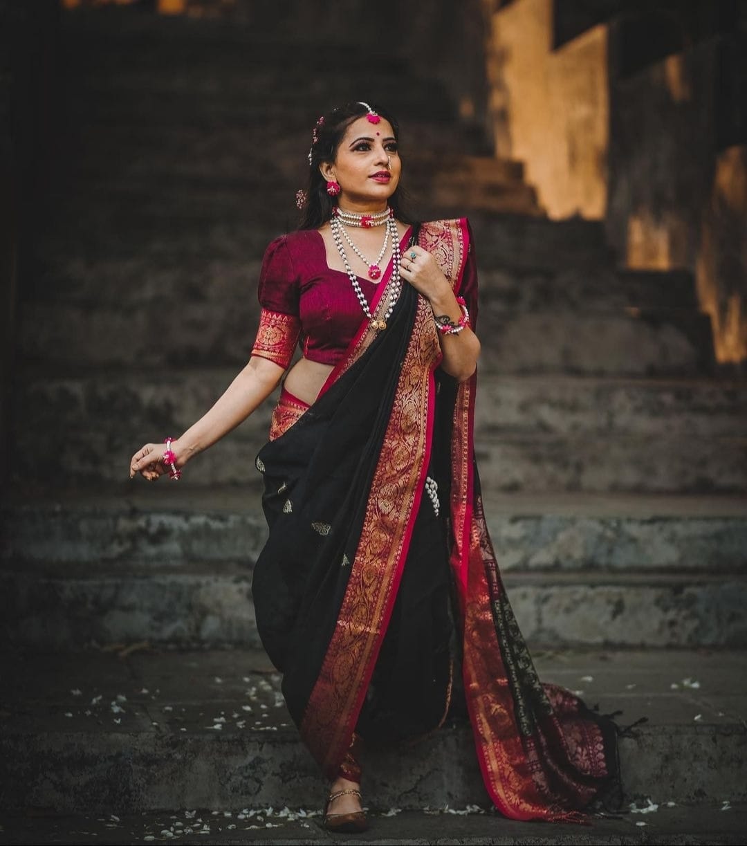 just purchased Black and Maroon Banarasi Soft Silk Saree with Golden Zari Border and Rich Pallu