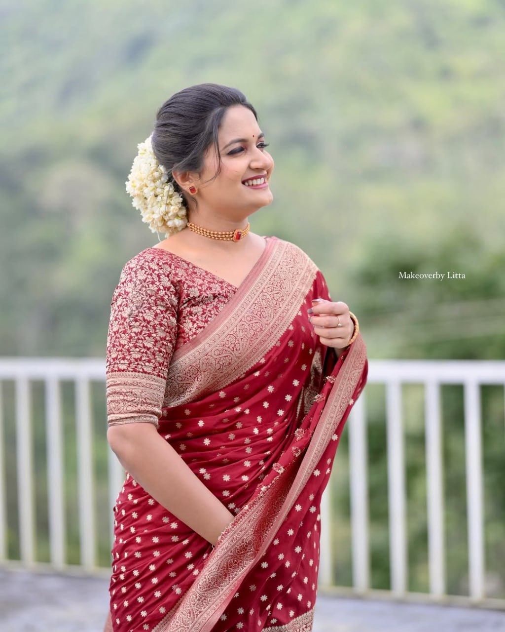 just purchased Crimson Red Banarasi Soft Silk Saree with Golden Border
