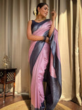 Blush Majesty Banarasi Soft Silk Saree with Charcoal Zari Border