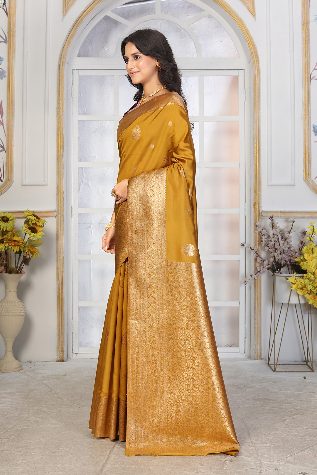 Golden Mustard Jacquard Silk Saree with Rich Gold Zari