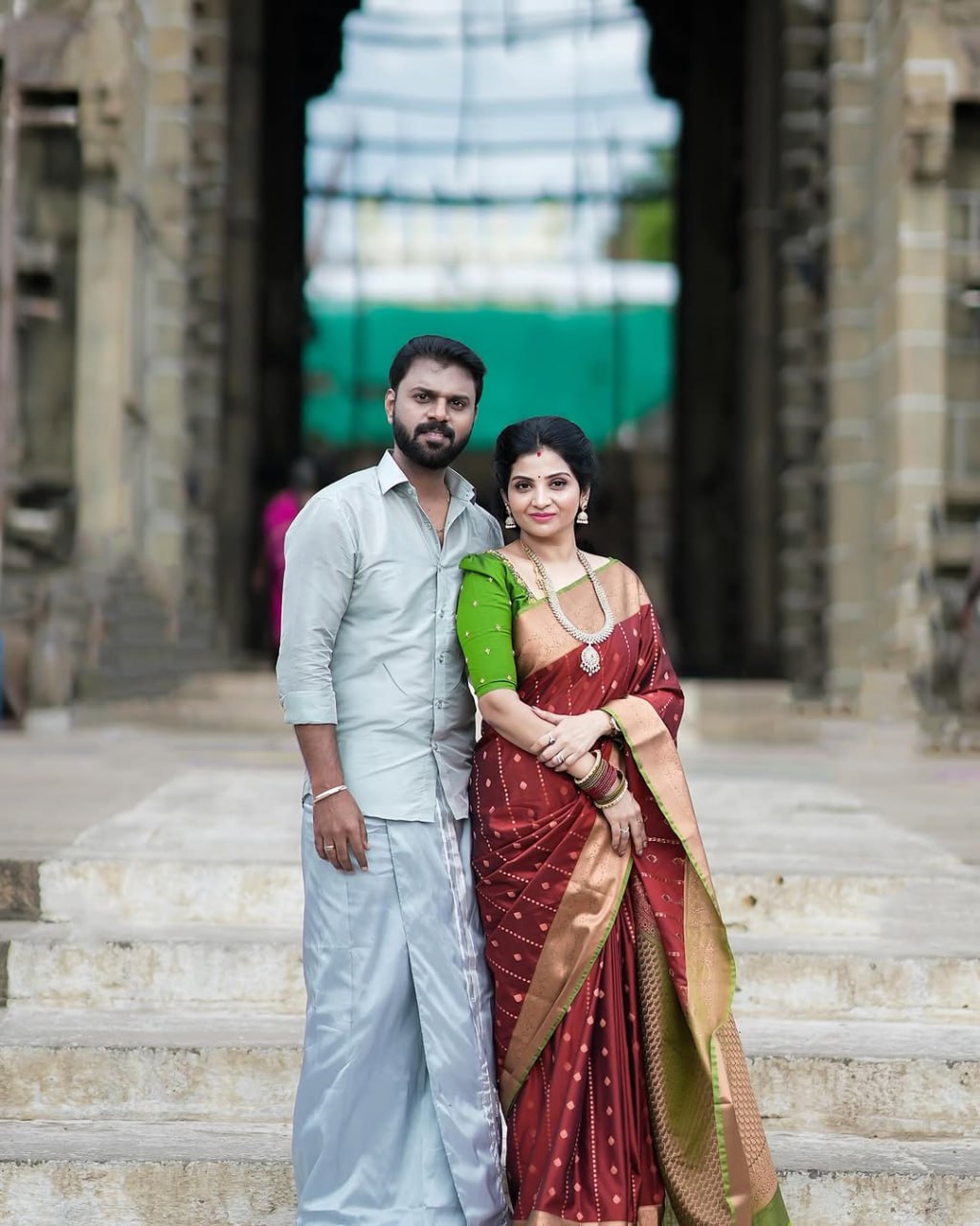 This Maroon Banarasi Soft Silk Saree features a rich golden zari border with delicate woven butta motifs across the body. Elegant and timeless, it is ideal for weddings, festive occasions, and traditional celebrations.