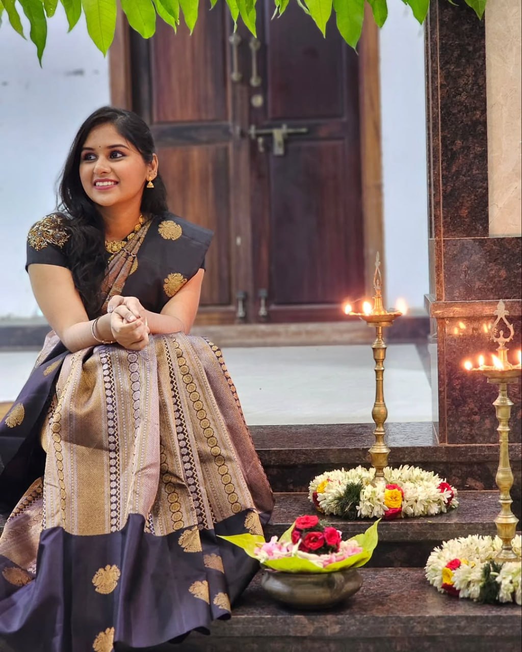just purchased Midnight Black Banarasi Soft Silk Saree with Antique Gold Zari Weaving