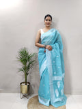 Organza Silk Saree with Silver Zari Butta Weaving & Border