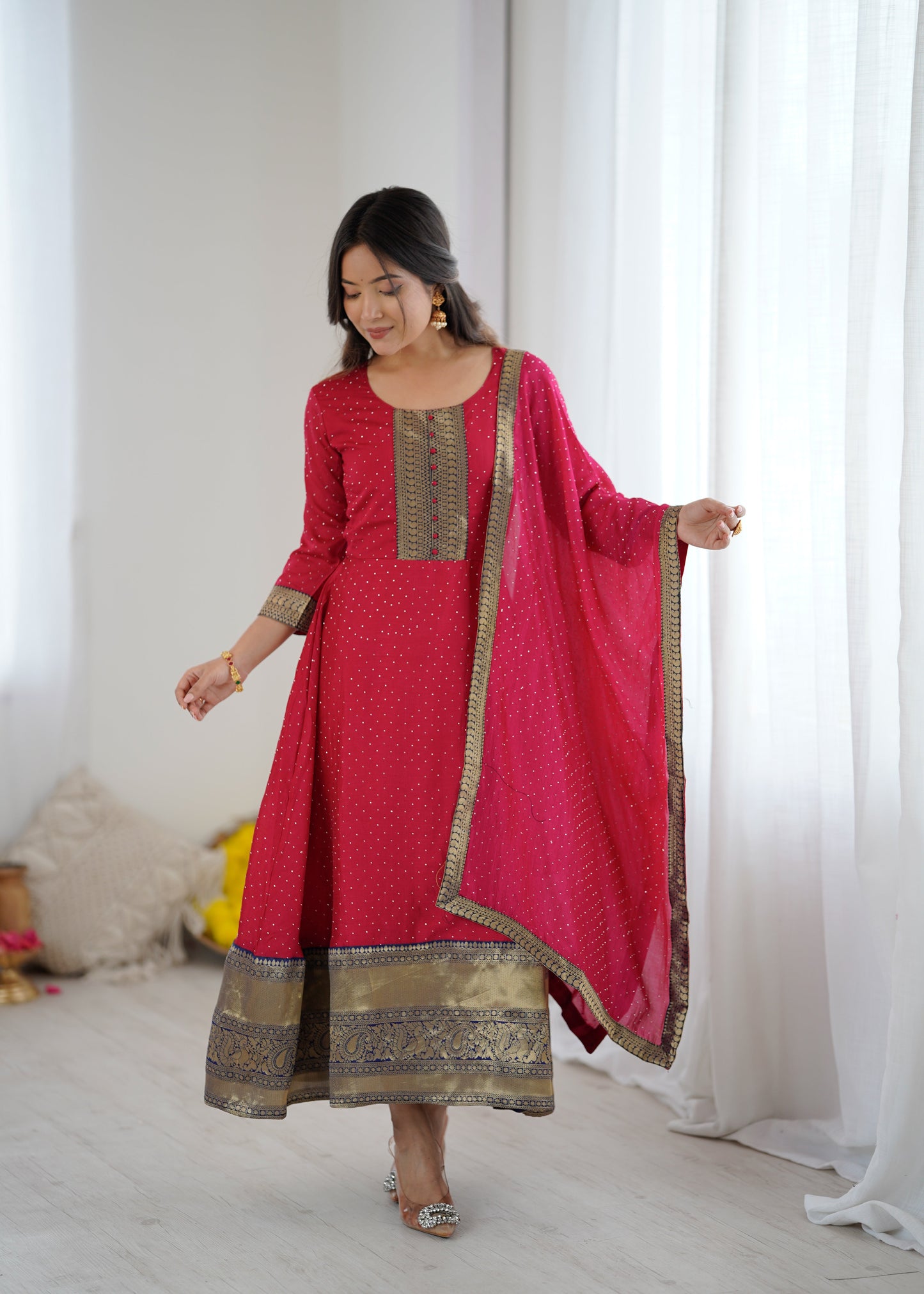 Premium Quality Pink Bluming Vichitra fabric with Jacquard Weaving Lace Border Duptta Gown