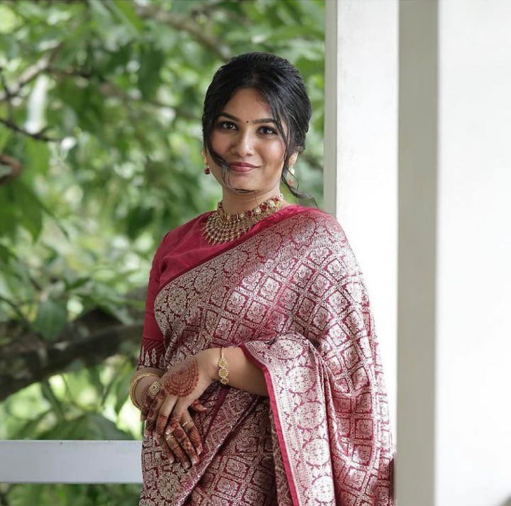 The delicate texture and royal sheen make it an ideal drape for weddings, festivities, and grand celebrations.