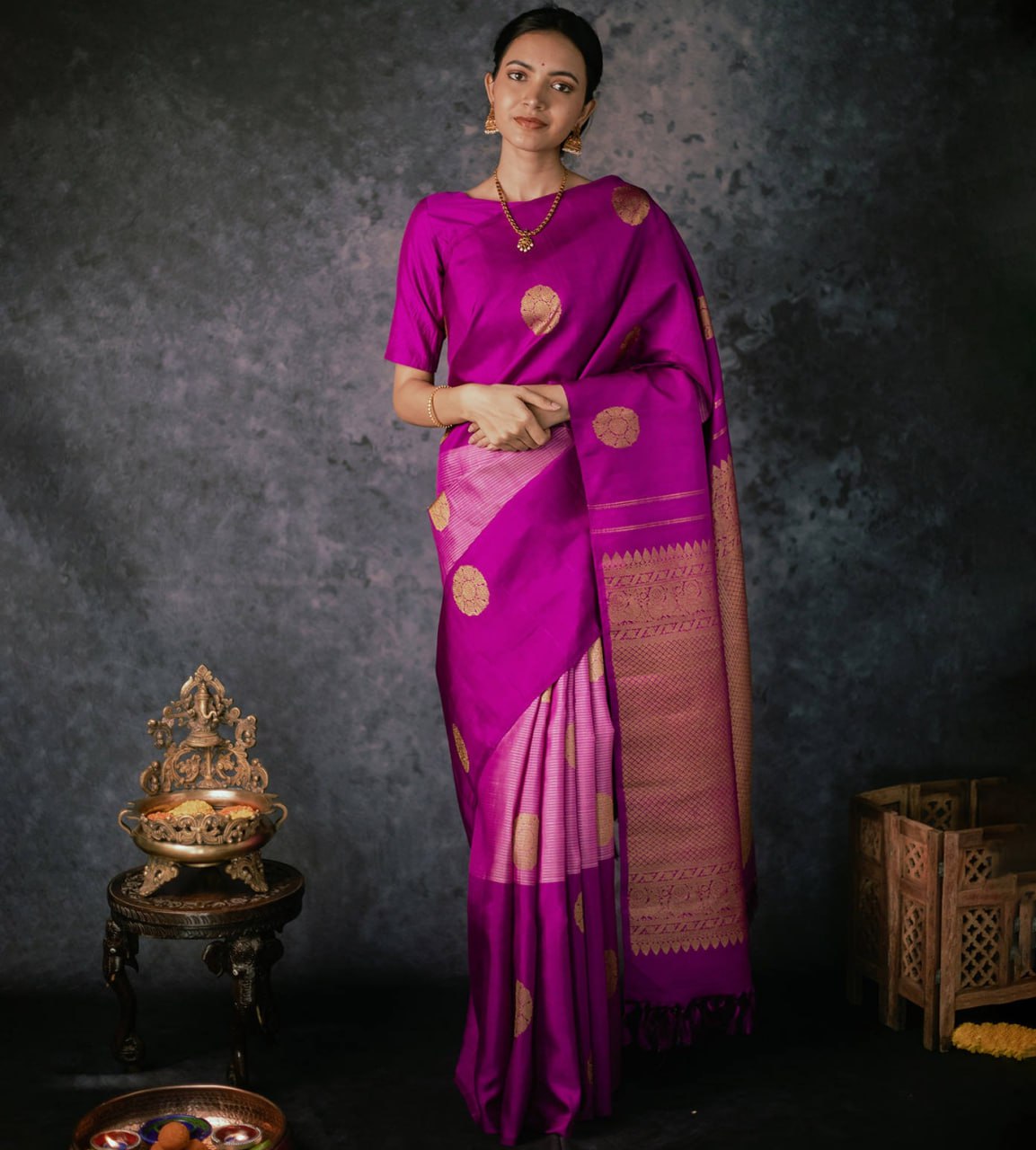 Royal Magenta Banarasi Soft Silk Saree with Golden Zari Weaving