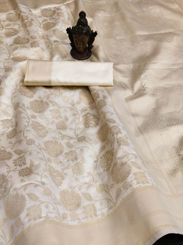 Blouse Color: Coordinated Off-White with Golden Border