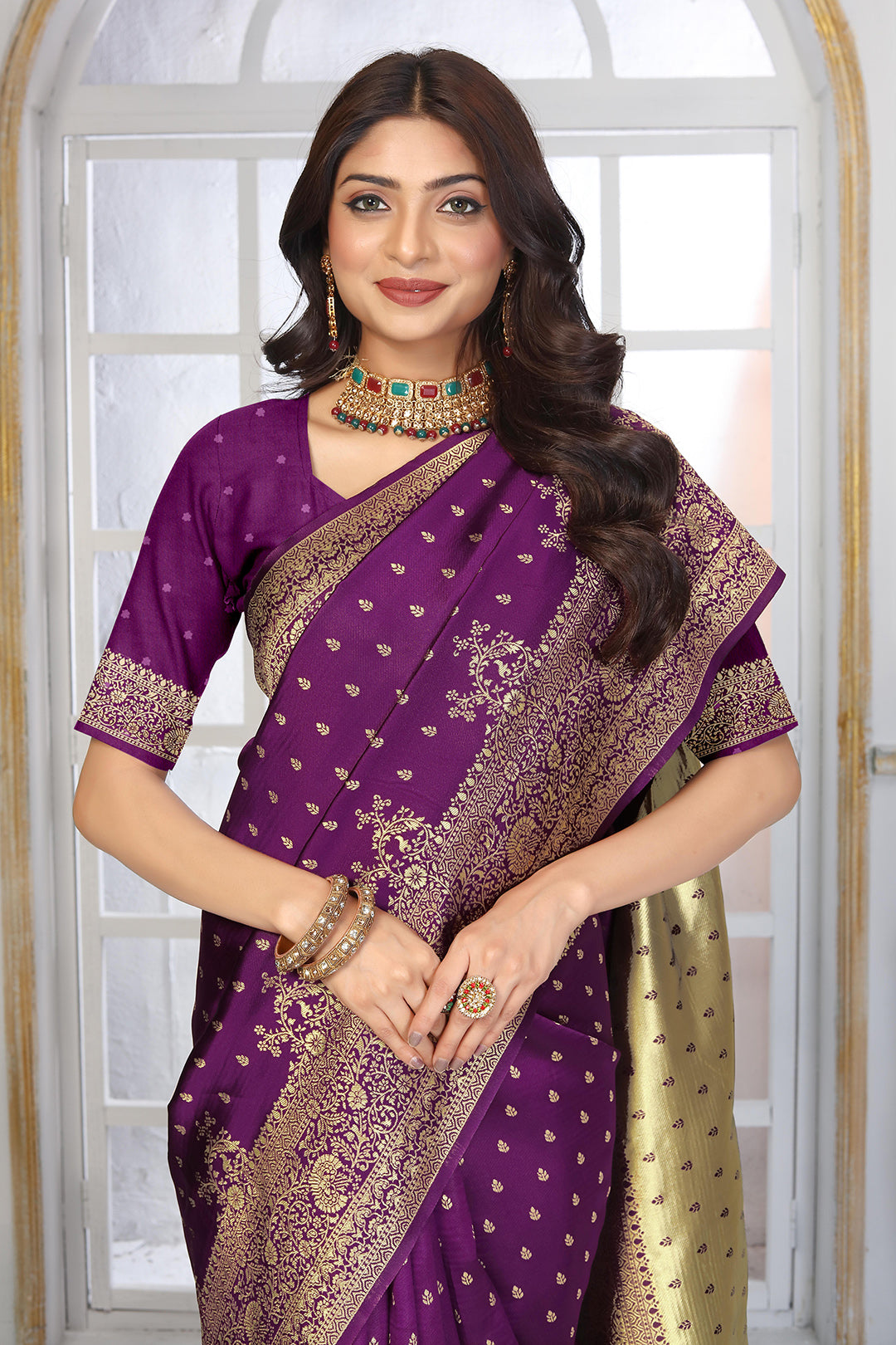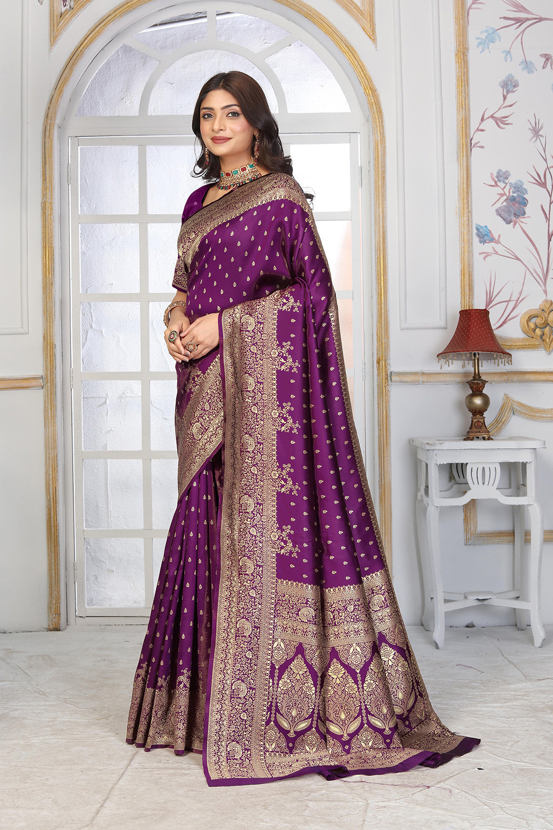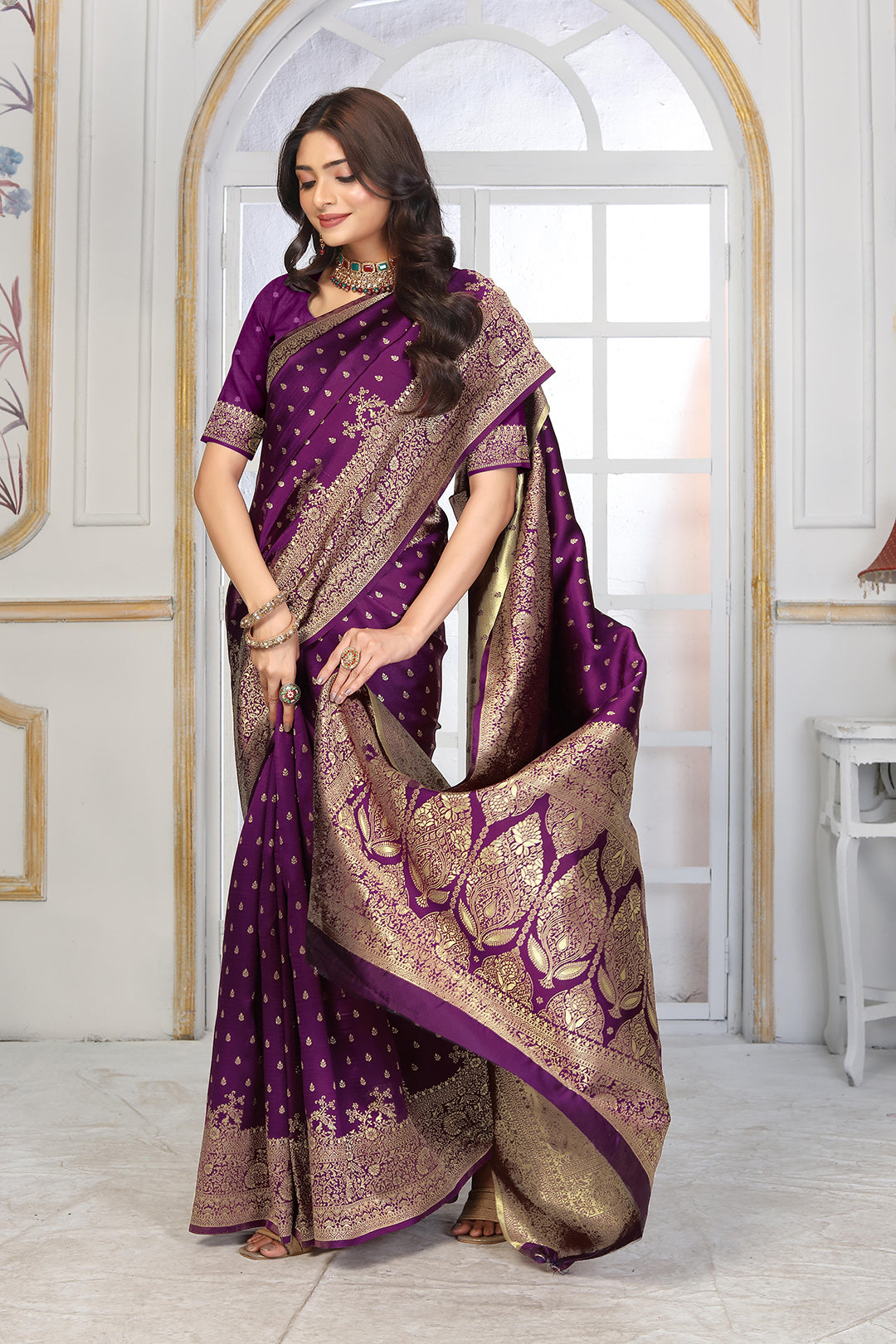 Royal Purple Banarasi Silk Saree with Rich Golden Zari Work
