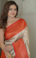 just purchased Royal Duo Banarasi Soft Silk Sarees – Purple & Cream-Orange Combo