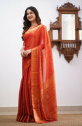 Available in timeless hues like olive green, bottle green, maroon, ivory, and rust orange, each saree is crafted to radiate elegance and comfort.