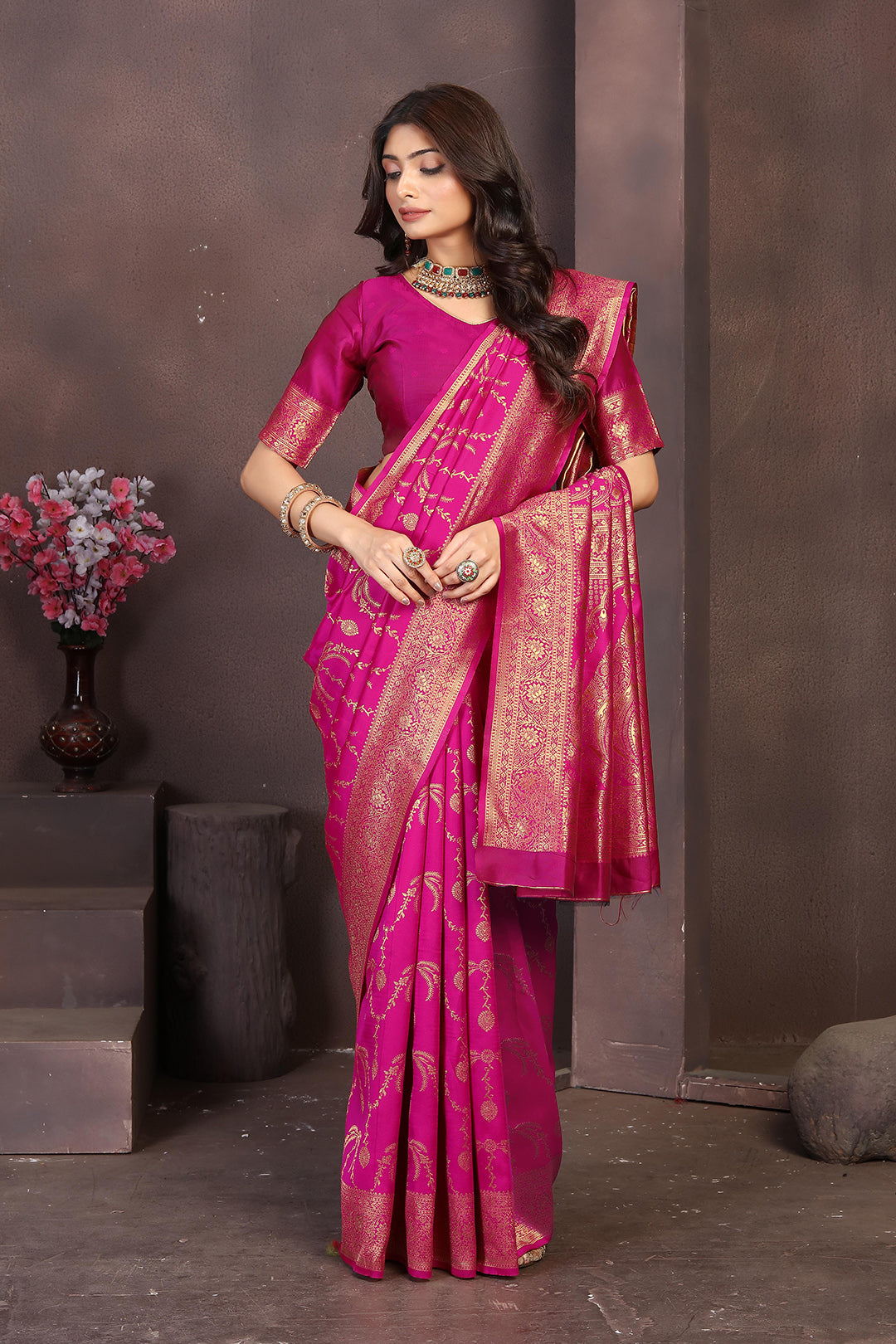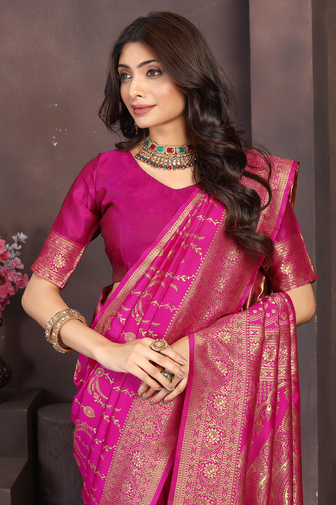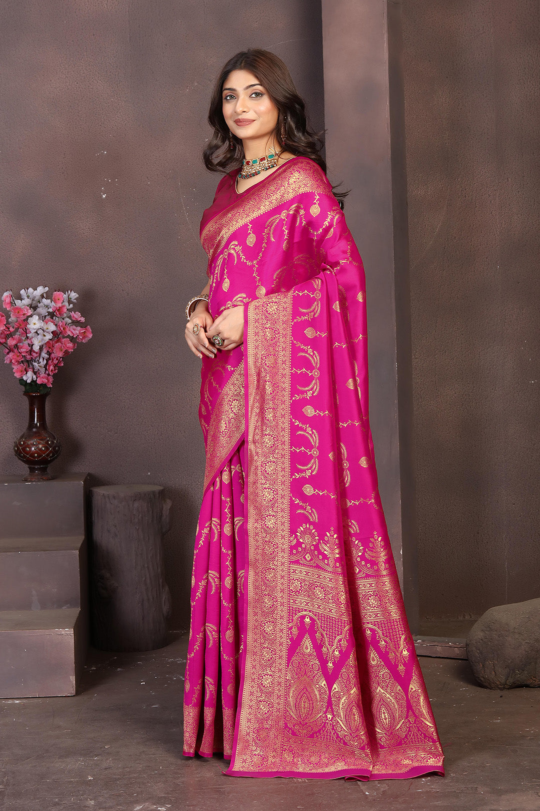 Vibrant Rani Pink Banarasi Silk Saree with Rich Golden Zari Detailing